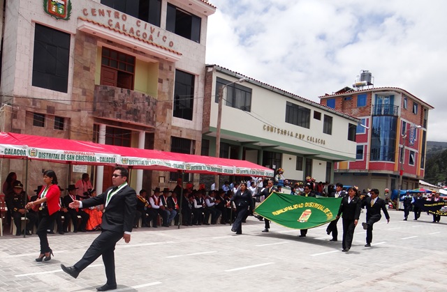 El pasado 31 de enero, en horas de la mañana nuestras autoridades participaron de la ceremonia protocolar y desfile cívico y sesión solemne en la plaza de armas del distrito de Cuchumbaya, y posteriormente en el distrito de San Cristóbal – Calacoa, en su momento los regidores obsequiaron los productos bandera de nuestro distrito, a cada alcalde y regidores, haciéndoles llegar el saludo y felicitación de nuestro alcalde Fortunato Palomino Flores que por motivos de gestiones se encontraba en la Capital.