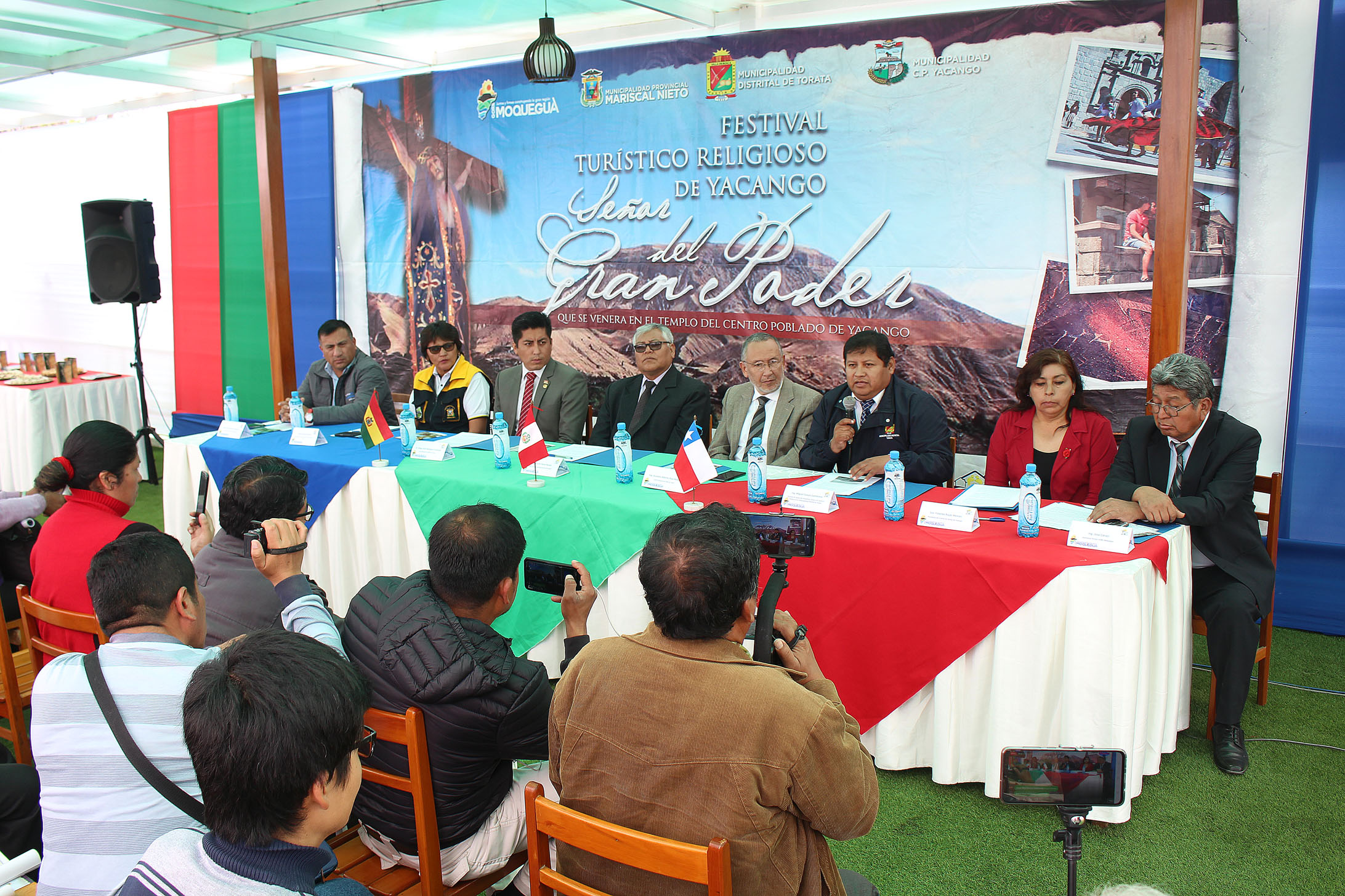Con gran participación de periodistas de diversos medios de comunicación en Tacna y del vecino país de Chile, se presentaron las diferentes actividades que se desarrollaran del 13 al 16 de setiembre en el Festival Religioso Turístico en honor al Señor del Gran Poder en Yacango, evento promovido por la Municipalidad del Centro Poblado Yacango, Municipalidad Distrital de Torata, Municipalidad Provincial Mariscal Nieto,Gobierno Regional Moquegua, Comité de Damas de Yacango, así como diferentes empresas privadas.